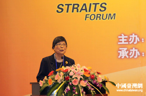 中國國民黨中央評議委員會主席葉金鳳在海峽經(jīng)濟(jì)區(qū)高層研討會上發(fā)表演講。(中國臺灣網(wǎng) 邵磌 攝)