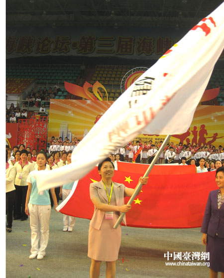 海峽巾幗健身大賽會旗交接儀式,下一屆舉辦城市龍巖接過會旗。中國臺灣網(wǎng)特約記者 蘭伯樂 攝