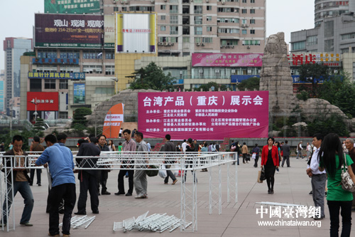 中國臺灣網5月27日重慶消息 首屆“重慶·臺灣周”明日即將開幕,記者今天在江北商圈活動籌備現場看到,作為活動項目之一,臺灣產品展示會的展位布建等工作正在如火如荼地進行著。參展的臺商代表表示,希望借助重慶臺灣周的舞臺,提高產品的知名度與影響力,借以拓展西南市場。