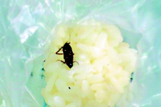 臺北市大安小學去年10月6日的米飯里出現小蟑螂。(圖片來源:臺灣《聯合報》)