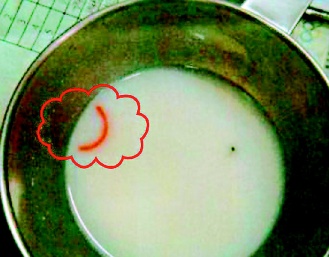 臺北市西松小學3月18日的湯中出現橡皮筋。(圖片來源:臺灣《聯合報》)
