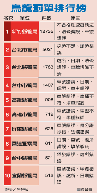 臺灣警方開錯罰單的原因千奇百怪。(圖片來源:臺灣《聯(lián)合報》)