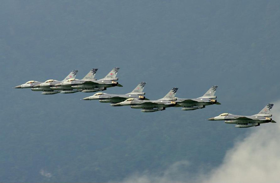 臺軍現役F-16A/B戰機編隊飛行。(圖片來源:新華網)