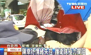 眼見陳幸妤崩潰,由“深綠”人士組成的保護(hù)陳幸妤的“護(hù)衛(wèi)隊(duì)”和其工作的診所護(hù)士,立刻一涌而上,安撫、保護(hù)陳幸妤進(jìn)入診所,以避免失控情緒擴(kuò)大。