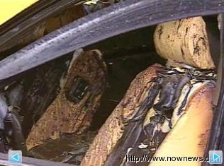 圖為被燒焦的汽車。圖片來源:臺灣“今日新聞”