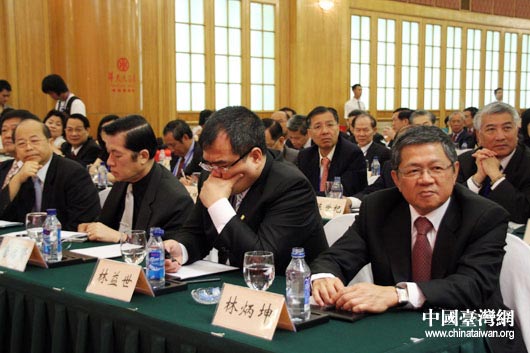 第五屆兩岸經貿文化論壇專題報告7月11日上午在長沙舉行,圖為臺灣無黨團結聯盟主席林炳坤(前排右一)等出席。(中國臺灣網 鐘寶華 攝)