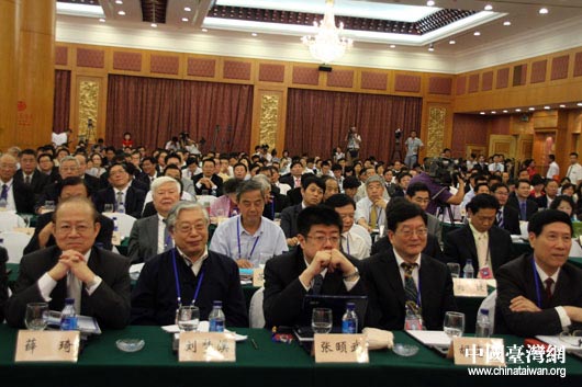 第五屆兩岸經貿文化論壇專題報告7月11日上午在長沙舉行,圖為北京大學中文系教授張頤武(前排左三)、中國藝術研究院文化研究所所長劉夢溪(前排左二)等出席。(中國臺灣網 鐘寶華 攝)