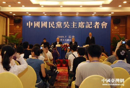 為期兩天的第五屆兩岸經(jīng)貿(mào)文化論壇今日下午在長(zhǎng)沙落下帷幕,閉幕式結(jié)束后中國(guó)國(guó)民黨舉辦記者會(huì),黨主席吳伯雄介紹參加此次論壇的情況,并回答記者提問。(中國(guó)臺(tái)灣網(wǎng) 鐘寶華 攝)