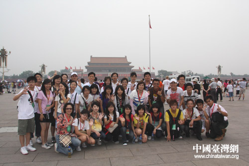 “2009臺胞青年千人夏令營”營員在天安門廣場合影 (中國臺灣網 石惠 攝)