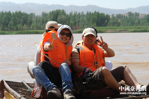 兩岸媒體記者乘坐羊皮筏子在黃河上漂流。(中國臺灣網 楊永青 攝)