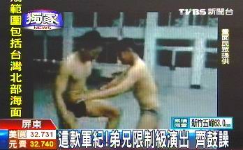 中國臺灣網8月6日消息 據臺灣TVBS電視臺報道,日前臺灣才發生兩名士兵在戶外操課時上演活春宮,現在又有民眾爆料,兩名士兵疑似在營區的中山室脫光上衣演出限制級動作,將近40名臺軍弟兄鼓噪起哄,完全沒有長官出面制止。