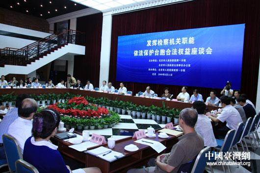 8月11日下午,北京市臺(tái)辦與市檢察院第一分院共同召開(kāi)“發(fā)揮檢察機(jī)關(guān)職能 依法保護(hù)臺(tái)胞合法權(quán)益座談會(huì)”。(中國(guó)臺(tái)灣網(wǎng) 鐘寶華 攝)