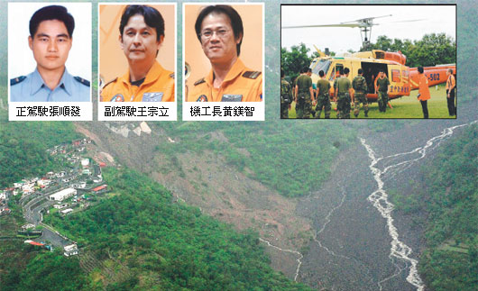 屏東縣伊拉部落成孤島,張順發(fā)等3人駕UH-1H直升機(jī)飛往救人,不幸墜谷。圖片來(lái)源:臺(tái)灣《聯(lián)合報(bào)》。