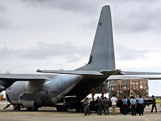 中國臺灣網(wǎng)8月17日消息 據(jù)臺灣“中央社”報道,美國第二批救援物資今天運抵臺空軍臺南基地,仍是由美軍琉球基地出發(fā)的C-130運輸機負責(zé)運載,物資是氯錠,重量為半噸。