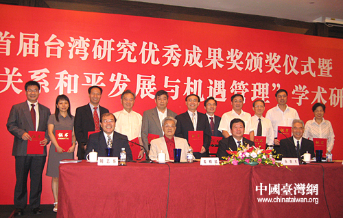中國臺灣網8月31日北京消息 今天上午,全國臺灣研究會在此間舉行了首屆臺灣研究優秀科研成果頒獎活動。國務院臺灣事務辦公室副主任孫亞夫、全國臺灣研究會執行副會長周志懷、全國臺灣研究會副會長姜殿銘、全國臺灣研究會副會長許世銓出席了頒獎活動。