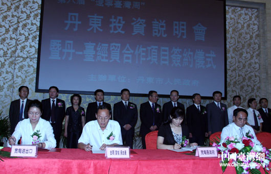 中國(guó)臺(tái)灣網(wǎng)9月1日丹東消息 第八屆“遼寧臺(tái)灣周”此間在丹東舉行,記者在今天上午的丹東投資環(huán)境說(shuō)明會(huì)上了解到,2009年下半年以來(lái),丹東市累積同臺(tái)灣達(dá)成投資合作協(xié)議26個(gè),總投資5億7000萬(wàn)美元,其中的18個(gè)投資合作協(xié)議今天現(xiàn)場(chǎng)簽訂。