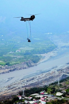 直升機參與“莫拉克”風災救援。圖片來源:臺灣《聯合晚報》