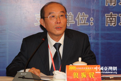 中國教育學會高中教育專業委員會副理事長倪振民發言。(中國臺灣網 董潔 攝)