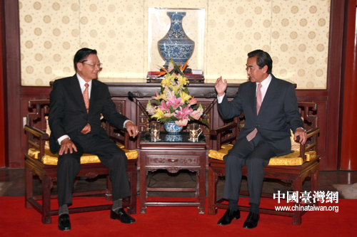 29日晚,中共中央臺辦、國務院臺辦主任王毅在釣魚臺賓館會見了臺灣海基會董事長江丙坤率領的海基會新聞交流團一行。(中國臺灣網 田云鵬 攝)