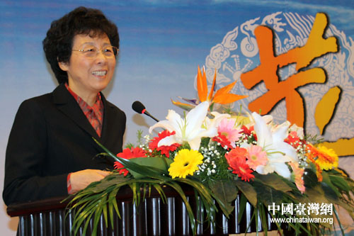 全國人大常委會(huì)副委員長、民進(jìn)中央主席嚴(yán)雋琪致辭。(中國臺(tái)灣網(wǎng) 董潔 攝)