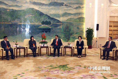 中國臺灣網11月3日北京消息 中共中央政治局常委、全國政協主席賈慶林在北京人民大會堂會見了出席“2009海峽兩岸工會論壇”的侯彩鳳等部分臺灣代表。中華全國總工會副主席、書記處第一書記孫春蘭,中臺辦、國臺辦主任王毅等參加了會見。