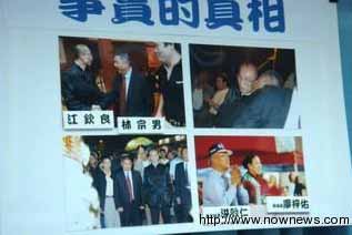 國民黨“立委”邱毅11日出示民進黨人士與遭指為“黑道”的更生人江欽良的合照,其中包含民進黨“立委”蔡煌瑯。 來源:臺灣“今日新聞網”