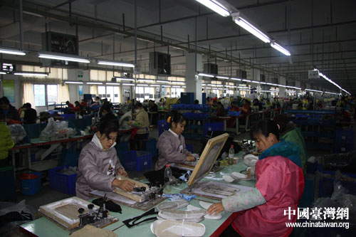 19日上午,第六屆中國網絡媒體江西行采訪團一行,前往萍鄉經濟開發區參訪,圖為某鞋廠員工正在工作。(中國臺灣網 高大林 攝)
