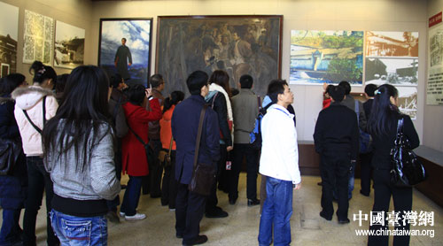 19日上午,第六屆中國網絡媒體江西行采訪團一行,前往萍鄉市安源路礦工人運動紀念館參訪,圖為采訪團成員觀看展板。(中國臺灣網 高大林 攝)