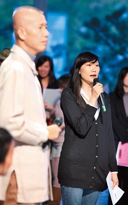 一現(xiàn)身就成為鎂光燈焦點(diǎn),馬元中的壓力可想而知。她專注地傾聽(tīng)老板蔡國(guó)強(qiáng)的致詞內(nèi)容,以流暢的英文快速翻譯出來(lái)。馬英九女兒大秀英文,全場(chǎng)屏息聆聽(tīng)。可能是因?yàn)榫o張,不難聽(tīng)出馬元中的聲音有點(diǎn)發(fā)抖,時(shí)而甩頭發(fā)的小動(dòng)作,也透露出要在眾媒體前擔(dān)任現(xiàn)場(chǎng)翻譯員,這份差事真不容易。 致詞結(jié)束后,馬元中立刻離開(kāi),深怕如果再多待一刻,恐又搶走蔡國(guó)強(qiáng)的風(fēng)采。(陳佳慧)