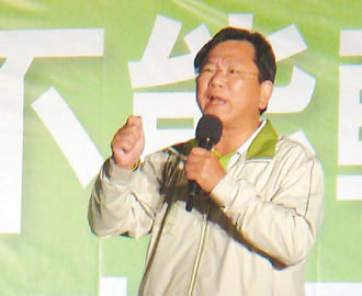嘉義縣長陳明文昨晚在張花冠造勢晚會上,反擊蔡豐文悖離民進黨精神與價值。圖片來源:臺灣《聯合報》