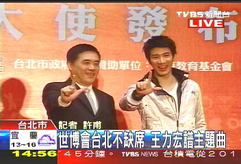 “一見你就笑” 王力宏創作上海世博會臺北館主題曲(圖片來源:臺灣TVBS電視臺)