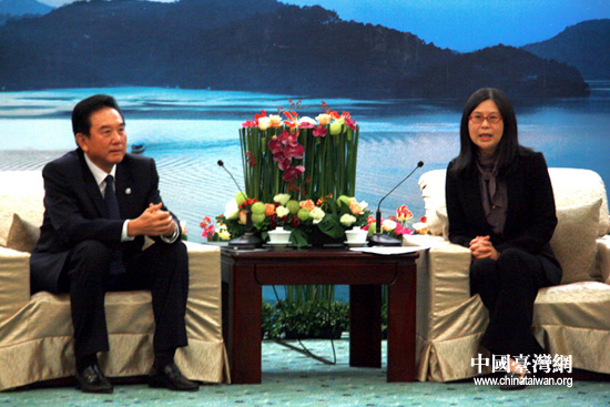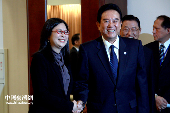 22日下午,參加兩會第四次領(lǐng)導(dǎo)人會談的海協(xié)會會長陳云林與臺灣大陸事務(wù)主管部門負責(zé)人賴幸媛會面。(中國臺灣網(wǎng) 李徽 攝)