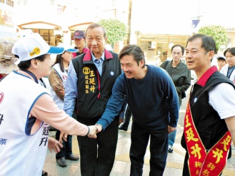國民黨秘書長金溥聰(右二)上午陪為國民黨籍花蓮“立委”候選人王廷升(右一)助選,稱蕭美琴欠臺灣人民一個道歉。 來源:臺灣《聯(lián)合晚報》