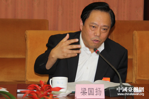 十一屆全國人大第三次會議臺灣代表團審議政府工作報告,中華全國臺灣同胞聯誼會會長、人大代表梁國揚發言。ㄖ袊_灣網 胡珊珊 攝)