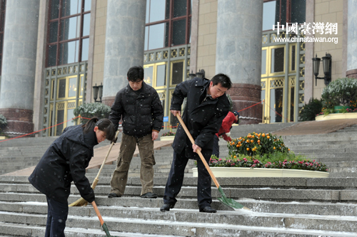 工作人員忙著清掃積雪!。ㄖ袊_灣網發 肖春陽、劉洋攝)