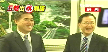 任憑現場記者再怎么起哄,郝龍斌、丁守中這一對最大尺度就是握手、拍拍背,沒有重演馬英九和郝龍斌“十指緊扣”的畫面。(陳佳慧)