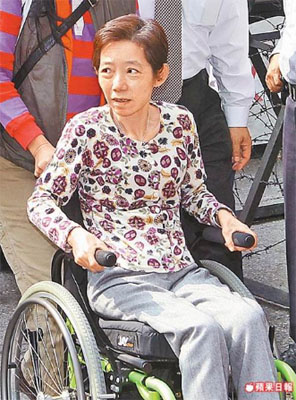 吳淑珍坐輪椅出庭。 來源:臺灣《蘋果日報》