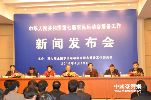 中國臺灣網4月19日消息 中華人民共和國第七屆農民運動會將于2012年10月在河南省南陽市舉辦,第七屆全國農運會籌委會今天上午舉行新聞發布會發布了這一消息!