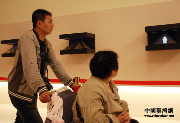震旦館內還展出了三個機器人“震旦小子”,寓意震旦未來向高科技領域發展。(中國臺灣網 鐘寶華 攝)