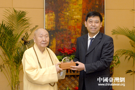 會見后,閆超英向惟覺長老贈送了代表陜西特色的禮品“華縣皮影”,惟覺長老回贈了中臺禪寺的“鎮寺之寶”辟邪半圓水晶模型。(中國臺灣網 陜西省臺辦 聯合報道)