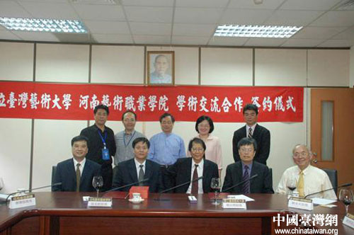 簽約儀式上,孫永新院長和黃光男校長分別代表河南藝術職業學院與臺灣藝術大學在學術交流合作協議書上正式簽字。河南藝術職業學院院長孫永新表示,希望兩校今后在傳承和弘揚中華民族傳統藝術方面,共同培養出優秀的藝術人才。至此,建校55年的臺灣藝術大學和建校54年的河南藝術職業學院成為了合作伙伴。