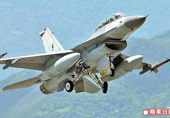 臺軍一架F-16戰斗機上月與民用的空照機一度發生“隔離不足”。圖片來源:臺灣《蘋果日報》