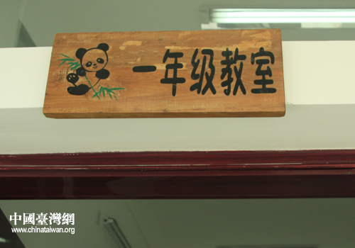學校教室門牌上的熊貓圖案,體現雅安與臺灣的熊貓情節。(中國臺灣網 高斯斯 攝)