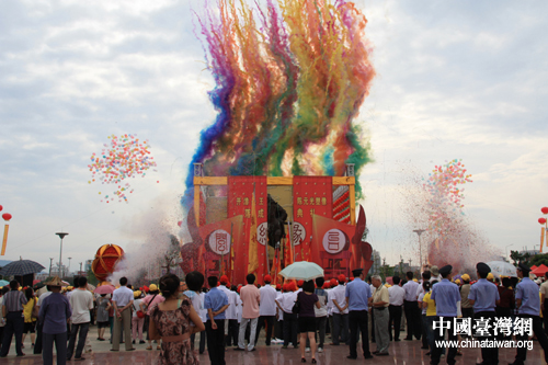 開漳圣王陳元光塑像今天下午在漳州市人民廣場落成。(中國臺灣網(wǎng) 肖燕 攝)