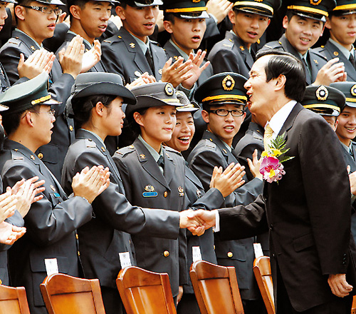 馬英九以他40年前上成功嶺暑訓(xùn)的經(jīng)驗(yàn),期勉全體軍校畢業(yè)生。(中國臺灣網(wǎng) 劉海偉)