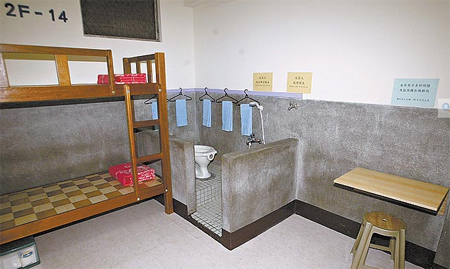 臺(tái)灣的看守所在夏天僅提供冷水、冬天洗澡時(shí)間才提供熱水,舍房里僅在上下鋪之間有一片固定的木板當(dāng)書桌。臺(tái)當(dāng)局“法務(wù)部”表示,由于經(jīng)費(fèi)有限,改善監(jiān)所設(shè)備將以“女先于男”、“被告(指看守所)先于受刑人(指監(jiān)獄)”的順序進(jìn)行。