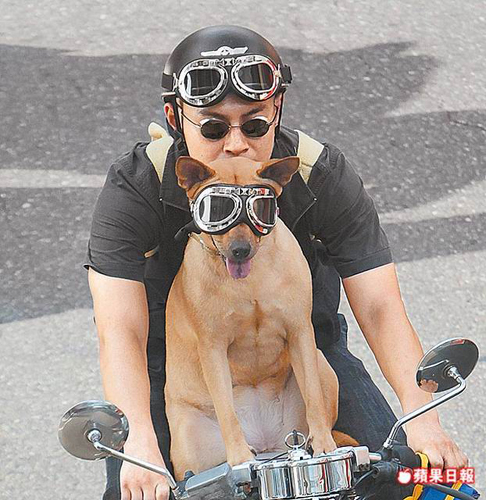 臺北市昨天高溫達攝氏37.1度,有外出民眾甚至為愛犬戴太陽眼鏡。圖片來源:臺灣《蘋果日報》