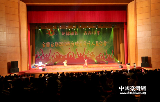 6日,全國臺聯2010年臺胞青年千人夏令營在北京舉行開營儀式。圖為大陸高校青年獻上了精彩文藝演出。(中國臺灣網 張弛 攝)
