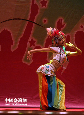 6日,全國(guó)臺(tái)聯(lián)2010年臺(tái)胞青年千人夏令營(yíng)在北京舉行開營(yíng)儀式。圖為大陸高校青年獻(xiàn)上了精彩文藝演出。(中國(guó)臺(tái)灣網(wǎng) 張弛 攝)