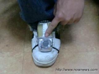 臺灣一男子在鞋面黏上有攝影功能的手機,鎖定穿短裙的女子進行偷拍裙下風光情事。圖片來源:臺灣今日新聞網